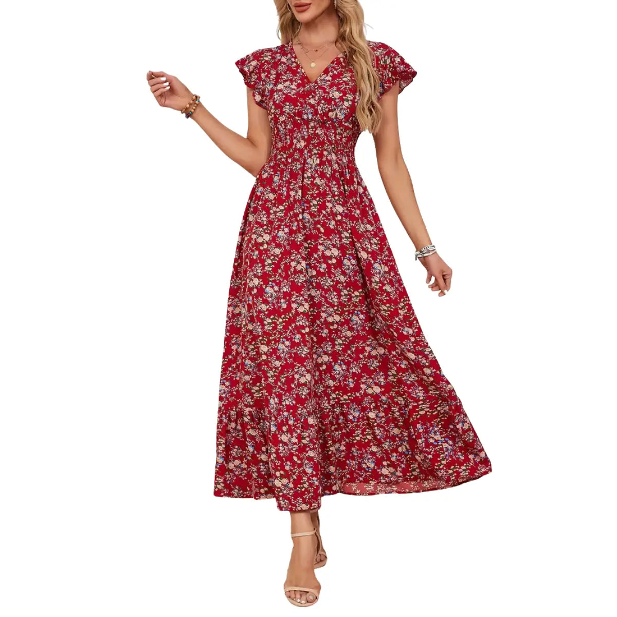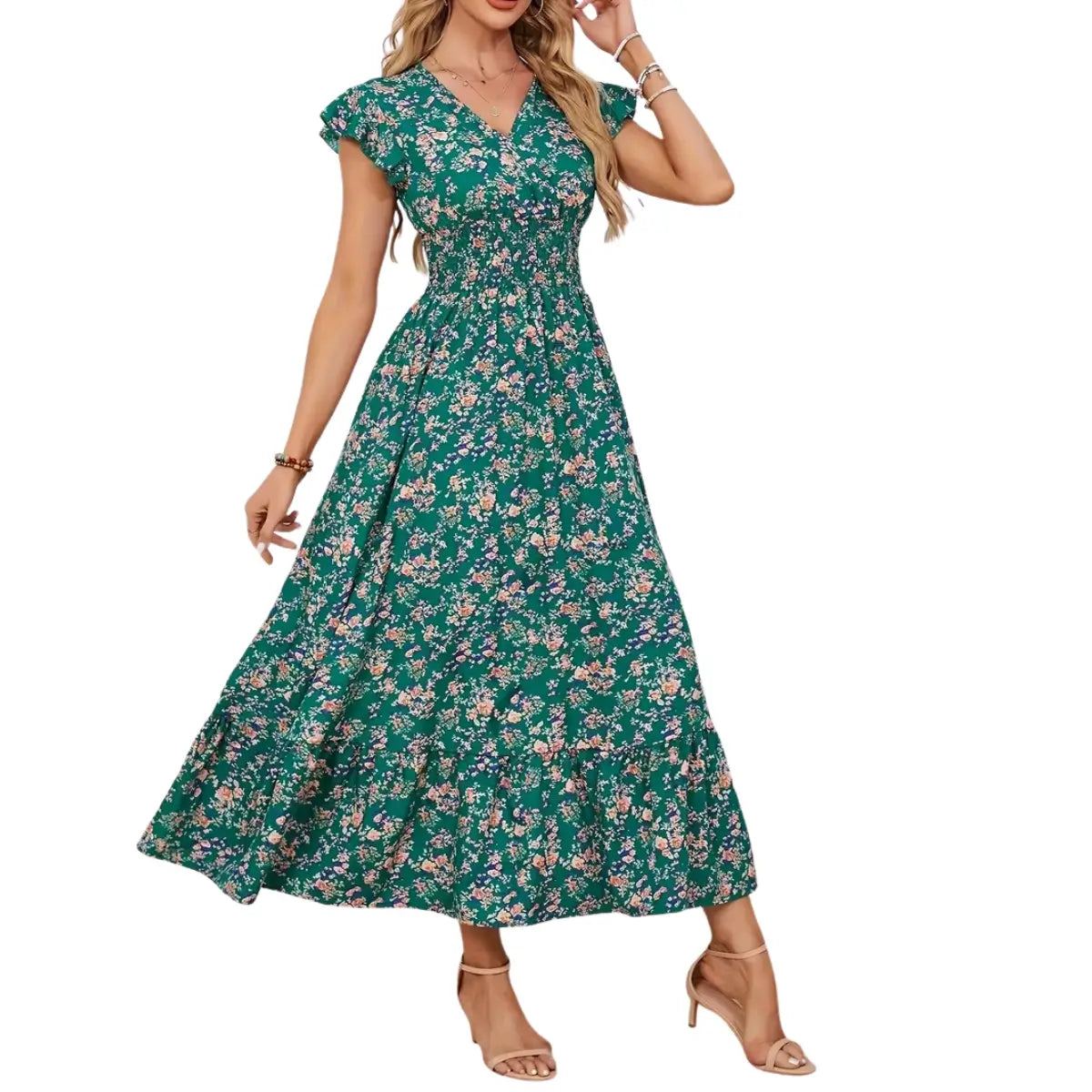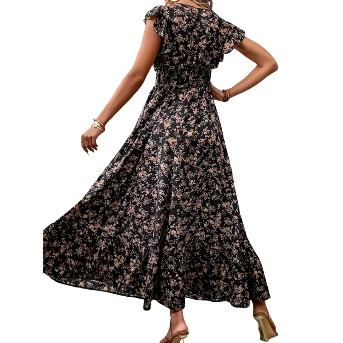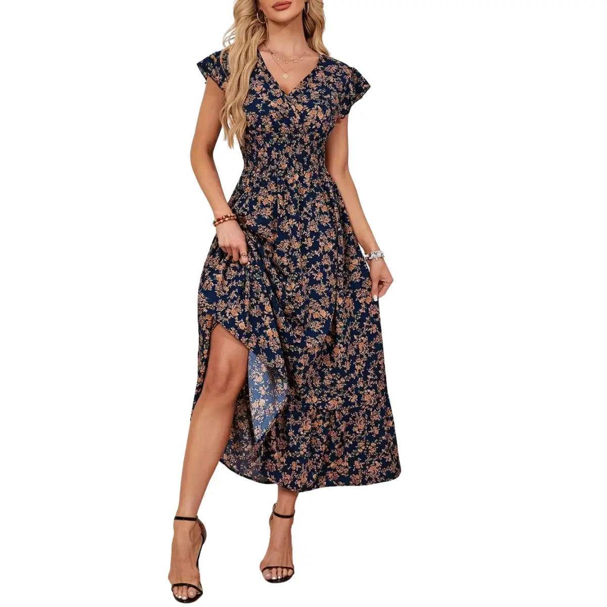 Robe Alice à fleurs avec ceinture à nouer. Des fleurs à profusion, une silhouette flatteuse — la robe que vous ne voudrez plus quitter.